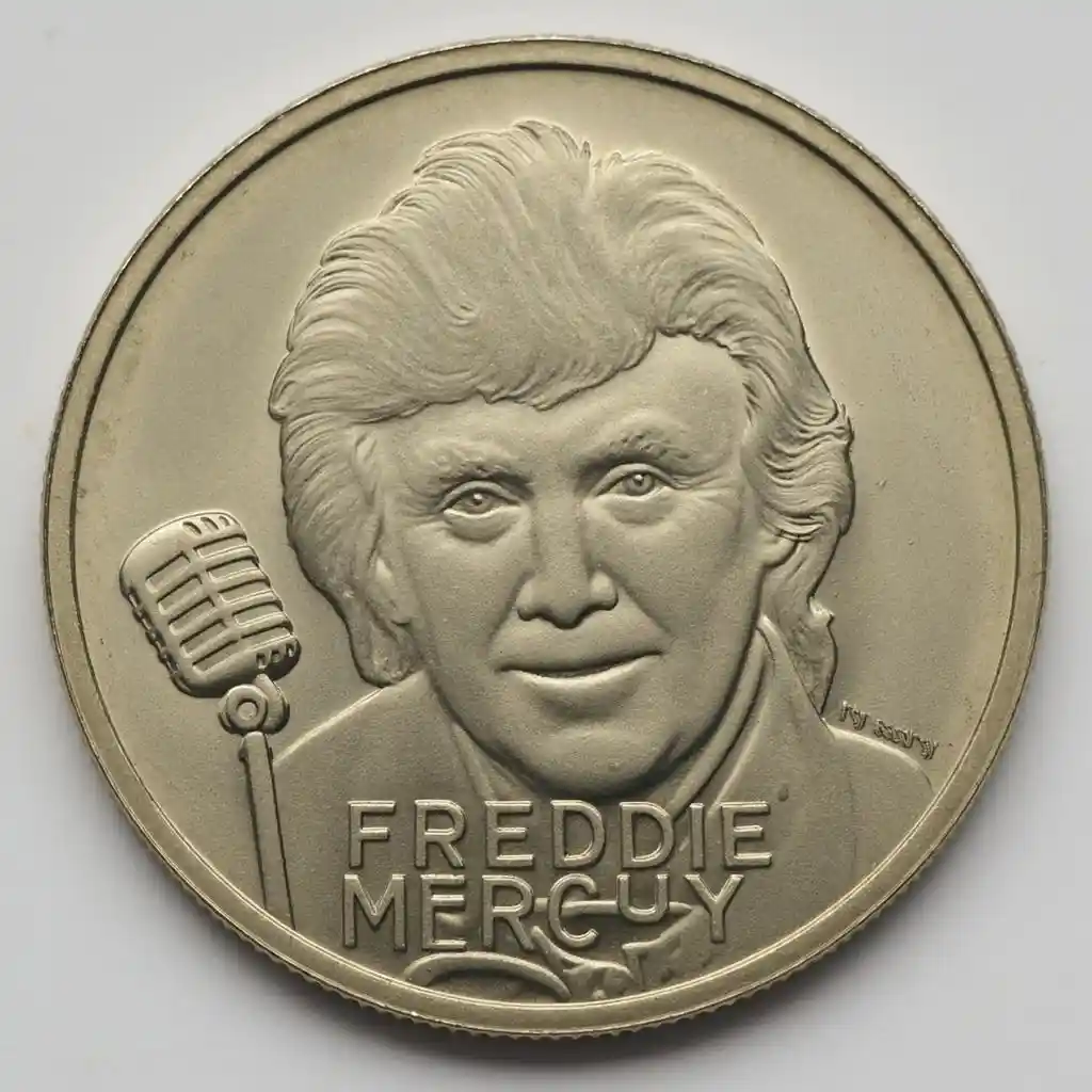 На монете певец изображен в одной из его самых узнаваемых поз, взятой с выступления Queen на стадионе Уэмбли в 1968 году, а рядом с его портретом расположена подпись артиста. Также будет доступна подборка монет в цвете, на которых певец в желтой военной куртке и белых брюках с красными полосами. Самую первую монету было доверено отчеканить его сестре.