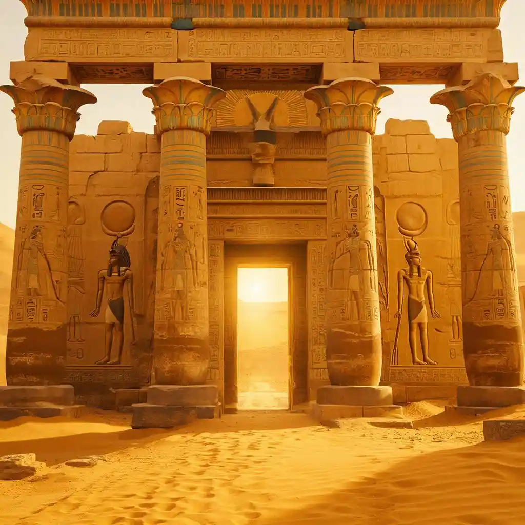 Храм расположен рядом с рекой Нил, строение делится на две части — располагающиеся на холме и в долине, — которые соединены насыпью.
