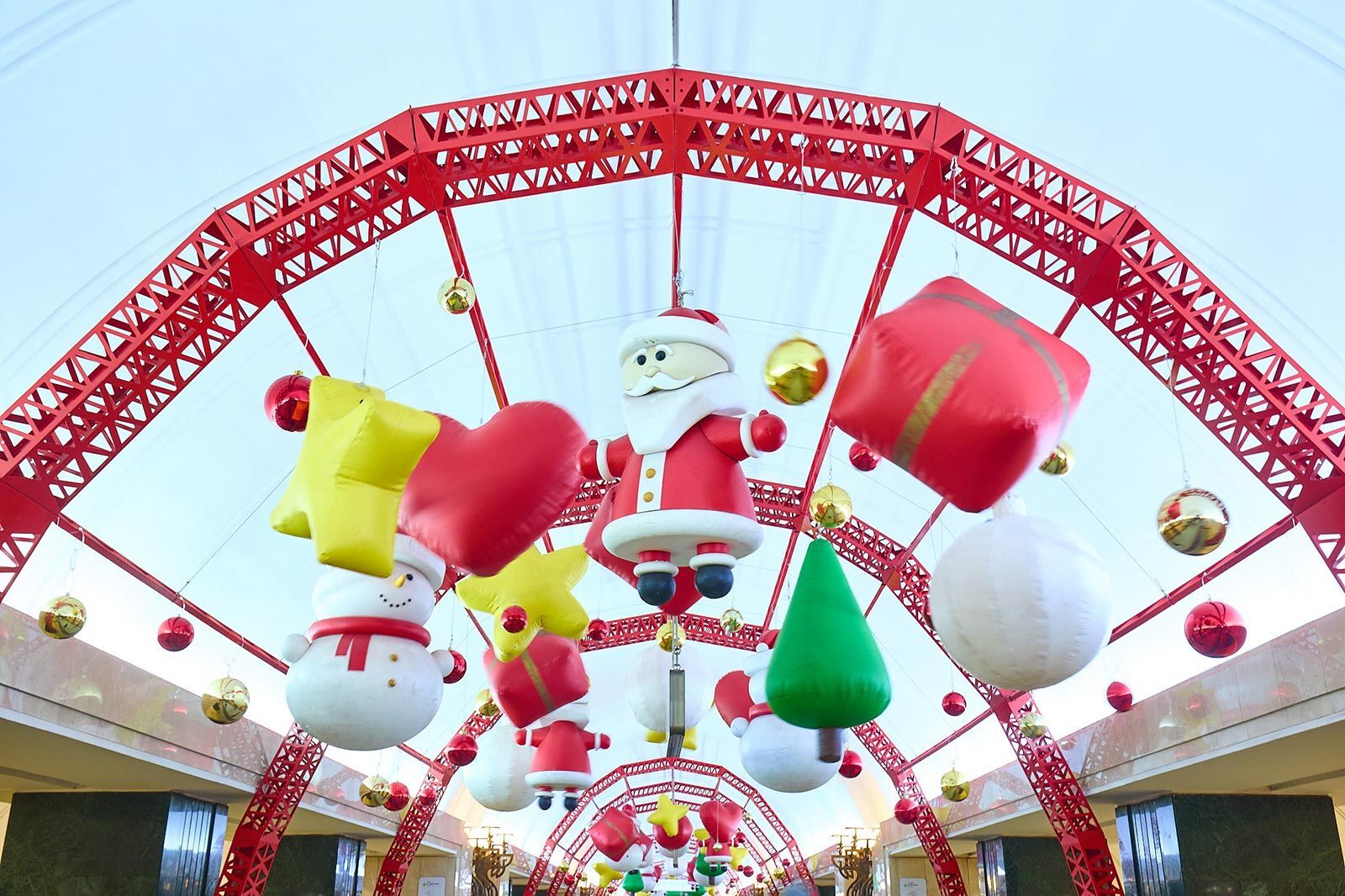Так, на станции «Трубная» разместили более 400 декоративных элементов. Это крупные объемные фигуры в виде елочных игрушек, подарков, снеговиков, колокольчиков, а также световые шары.