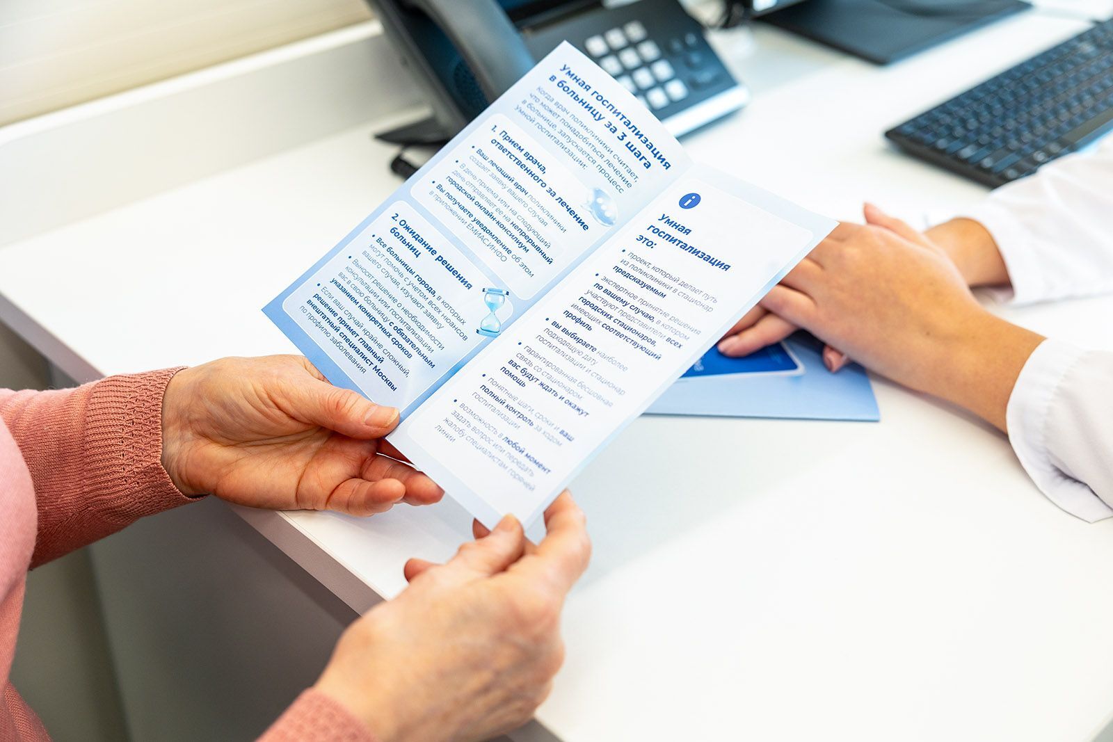 Чтобы минимизировать возможные сбои работы новой системы для пациентов и помогать медицинским учреждениям в новой для них работе, была запущена специальная горячая линия, доступная по номеру телефона. Ее специалисты помогают решить вопросы, возникающие на любом этапе.
