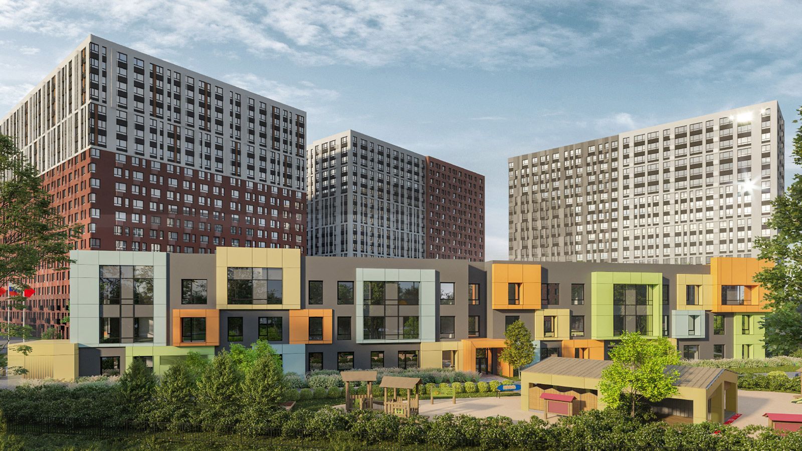 Проект благоустройства включает создание 14 игровых площадок, места для изучения правил дорожного движения и двух спортивных зон. Монтаж всех игровых и спортивных сооружений завершен. В рамках финального этапа территорию озеленят: уложат рулонный газон, высадят кустарники и деревья.