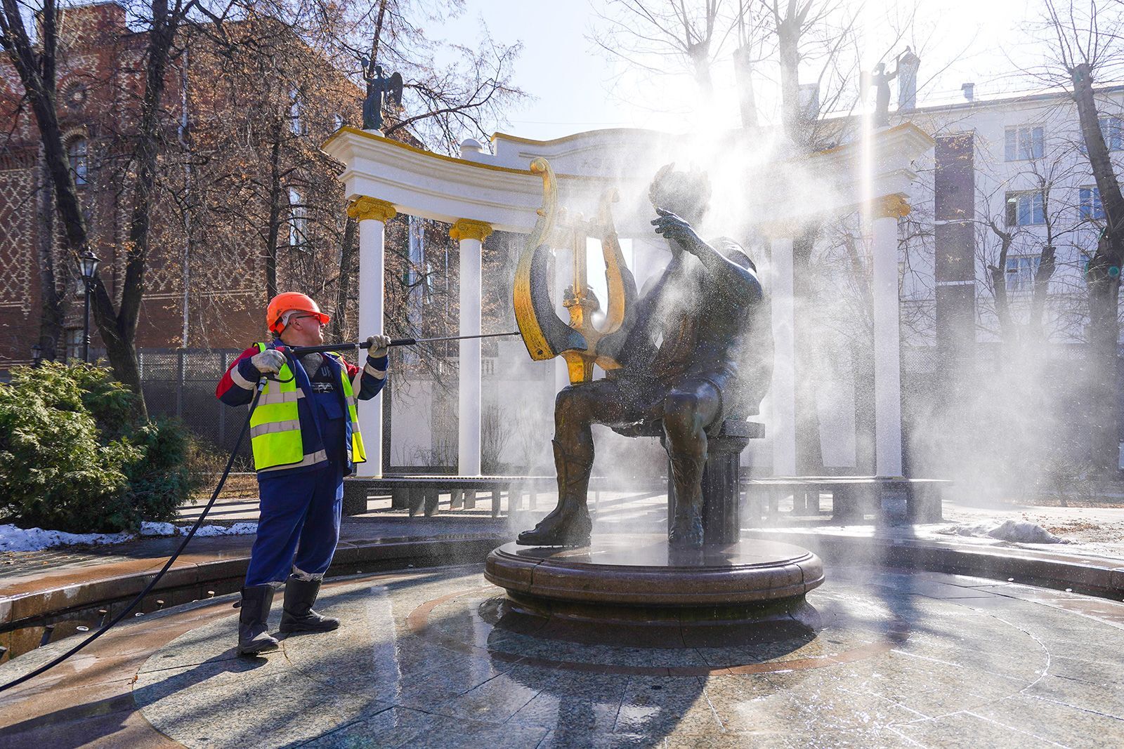 «В настоящее время в городе проходят масштабные промывки инженерных сооружений после осенне-зимнего периода, в общей сложности до конца апреля приведем в порядок более двух тысяч объектов — мосты, тоннели, подземные и надземные пешеходные переходы, набережные, причалы, фонтаны и памятники. Сегодня провели промывку фонтанов в саду „Аквариум“, который расположен на Большой Садовой улице и является любимым местом отдыха москвичей и гостей столицы», — рассказал Петр Бирюков.
