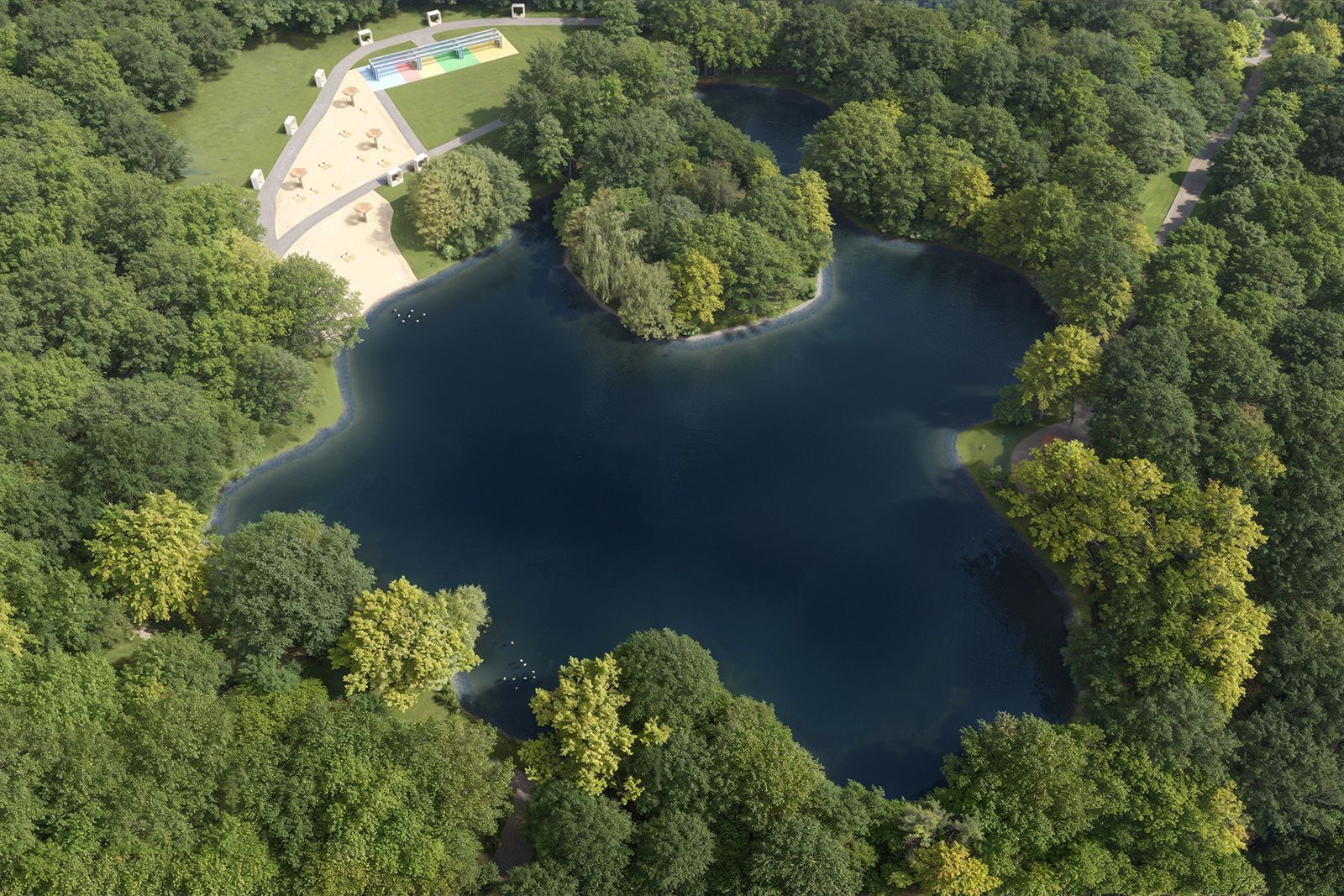 Кроме того, отремонтируют береговую полосу протяженностью почти 430 метров с помощью гранитного щебня, что даст возможность остановить эрозийные процессы. Зону существующего песчаного пляжа дополнят новым речным песком, а также приведут в порядок бревенчатое укрепление вокруг острова на середине пруда.