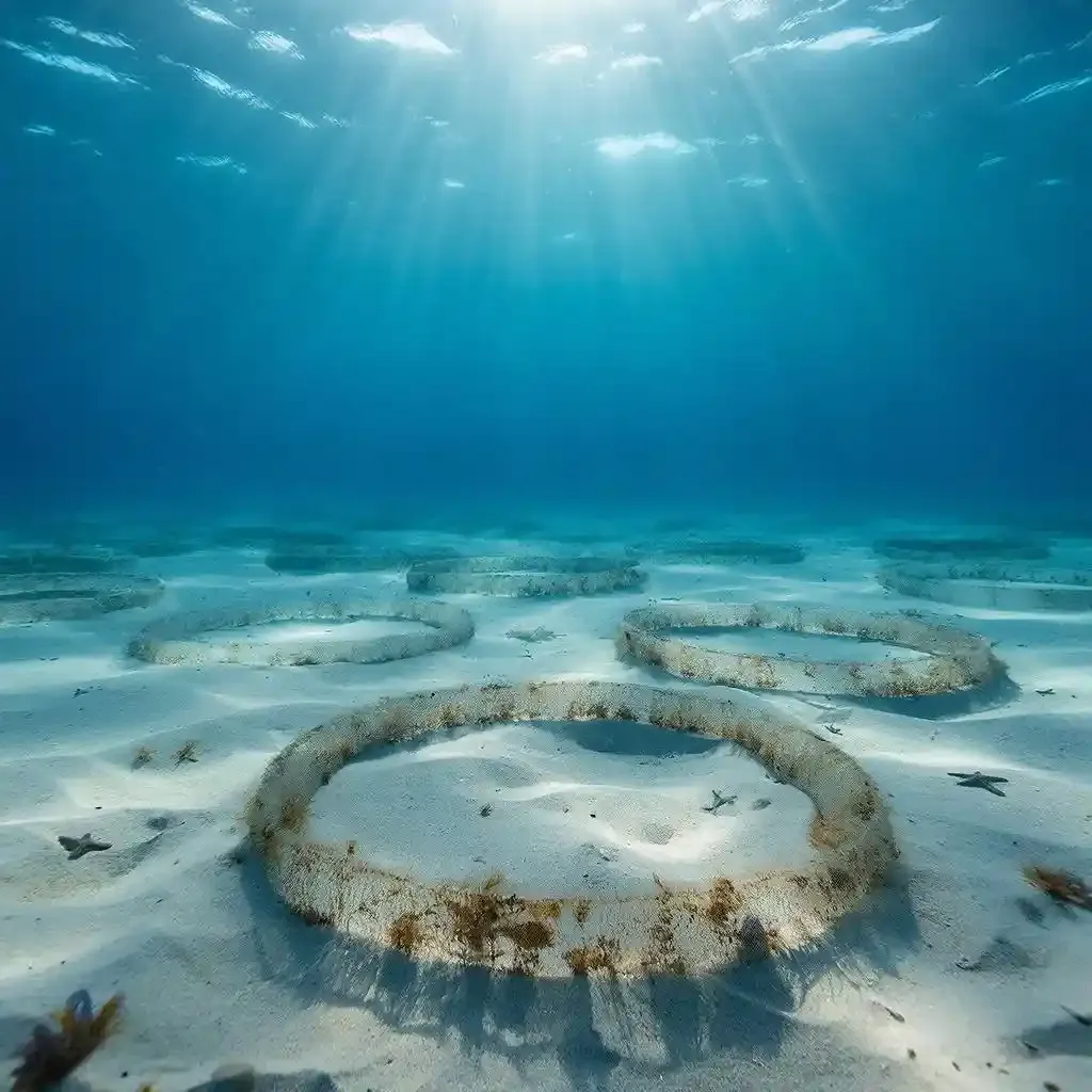 На морском дне у острова Амами-Осима в Японии десятилетиями находили загадочные песчаные круги диаметром около двух метров. Идеальные узоры с радиальными гребнями и бороздами, напоминающими спицы колеса, долго оставались природной тайной. Разгадка оказалась удивительной: автор этих сложных структур — небольшая рыба-архитектор длиной всего около 10 см.