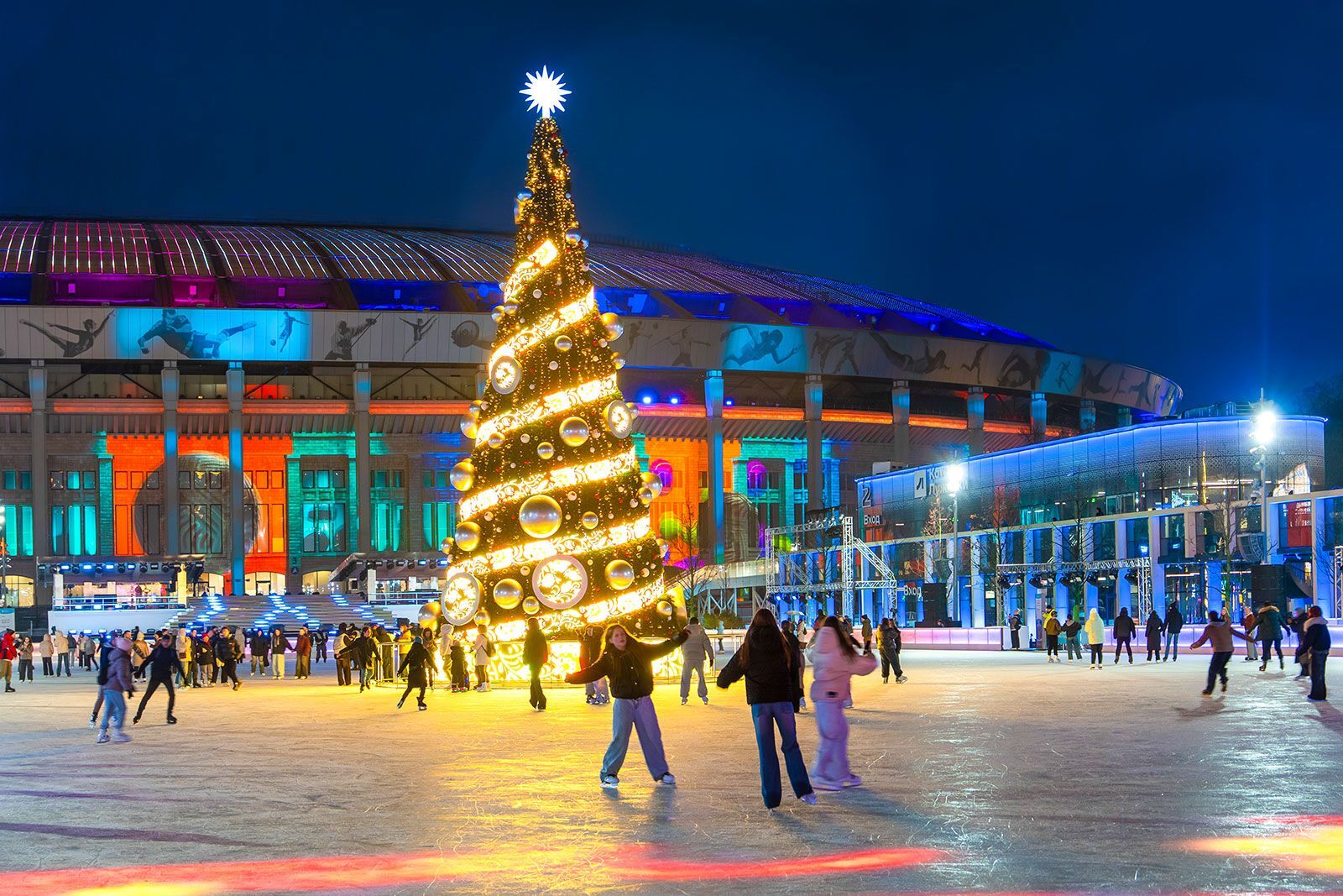 В декабре 2025 года после первого этапа благоустройства территории олимпийского комплекса открыли один из самых технологичных катков Москвы. Во время зимнего сезона на площадке гости могут прокатиться вокруг новогодней медиаелки, посмотреть вечернее 3D-шоу на фасаде Большой спортивной арены, а также приобрести согревающие напитки и еду, не снимая коньки: персонал предоставляет специальные чехлы для лезвий. Здесь можно попробовать пиццу, ремесленные колбасы, хинкали, морепродукты, боулы и десерты.