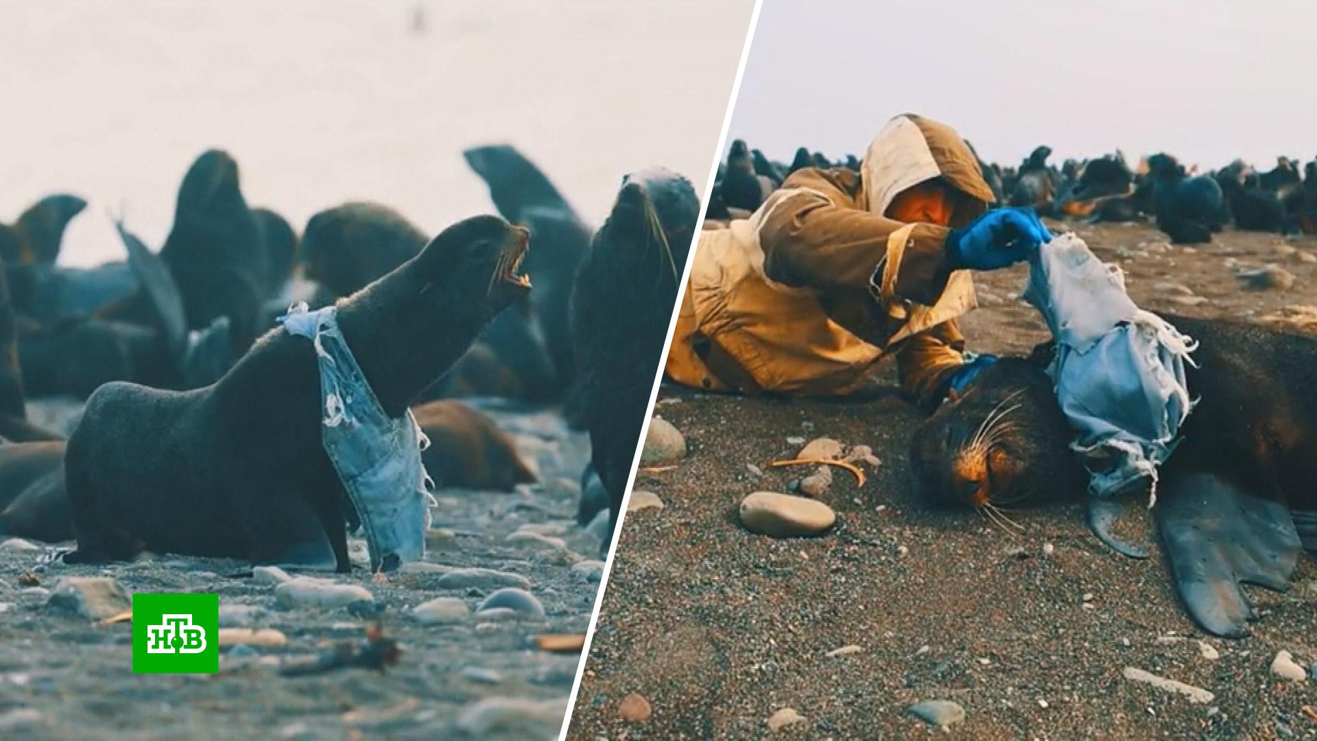 Животное запуталось в старой джинсовой одежде, брошенной кем-то на берегу. Ткань врезалась в тело и душила животное. К счастью, на помощь пришли волонтеры из группы помощи морским обитателям.