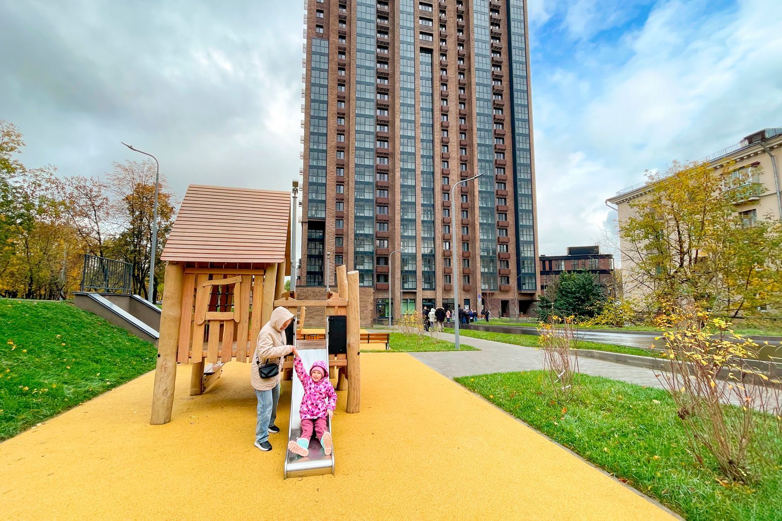 Рядом с домом оборудовали две детские площадки, а также пространство для отдыха. Для комфорта и безопасности жителей установили современное освещение и видеокамеры.