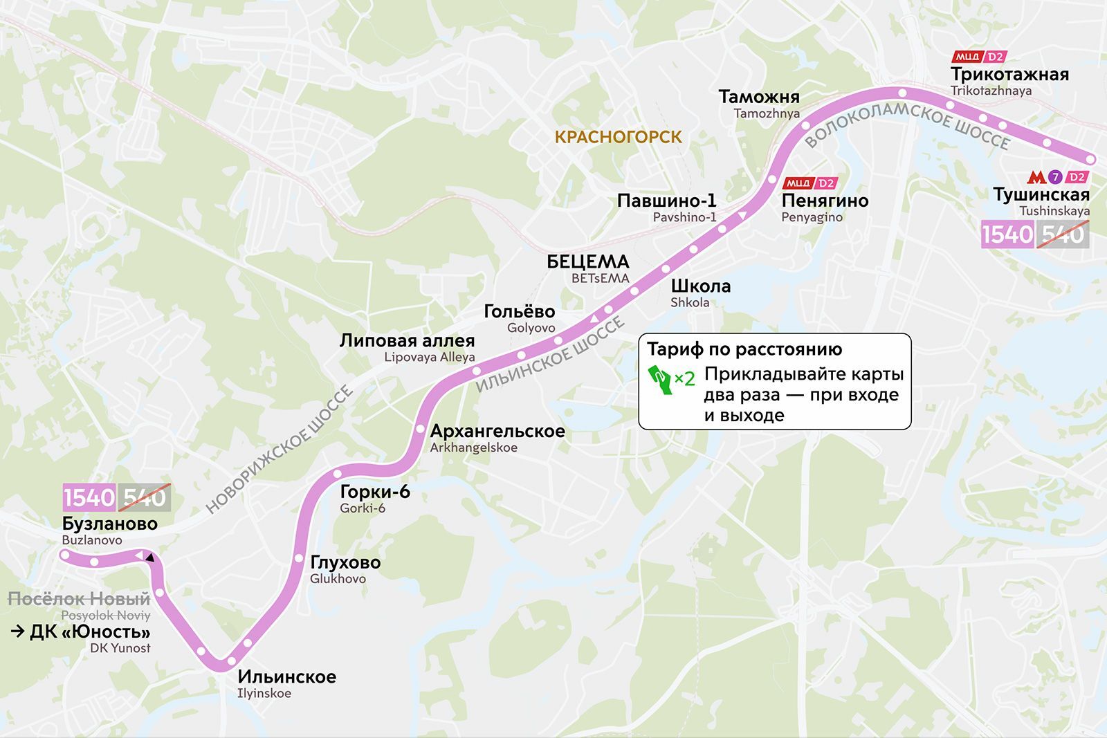 18 апреля для жителей столицы и Подмосковья начнет работать новый автобусный маршрут № 1540 в рамках проекта «Москва — область». Он будет проходить от станции метро «Тушинская» до деревни Бузланово городского округа Красногорск.