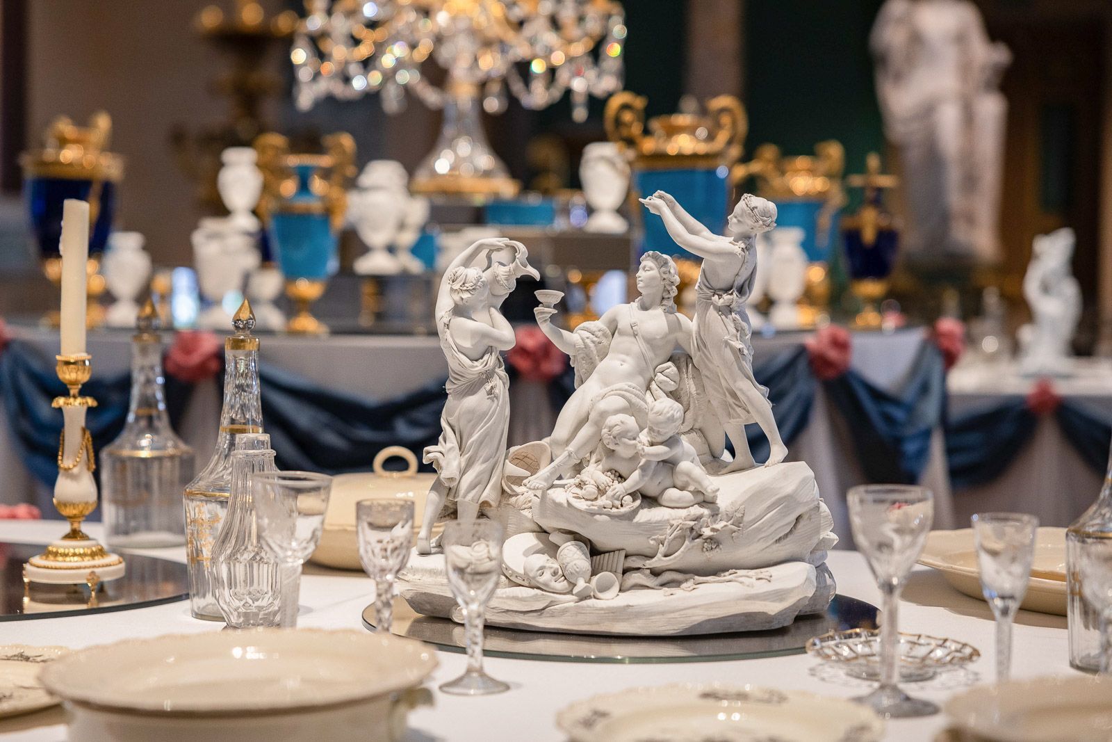 Благодаря отреставрированным светло-розовым фасадам с белоснежными колоннами, рельефными скульптурами, лепным фризом и орнаментом Египетский павильон кажется легким и воздушным. Внутри он залит дневным светом, который проникает через большие окна и застекленную крышу потолка-колодца. Здесь всюду блеск золота и хрусталя, богатство тканей и художественной росписи, причудливые деревянные колонны, декорированные под мрамор, и многоярусные люстры. В центре главного зала стоит празднично сервированный стол с вазами, графинами, фаянсовыми тарелками и хрустальными бокалами, словно тут готовятся к званому ужину. Это часть выставки «В гостях у графа Шереметева», которая открылась в обновленном здании.