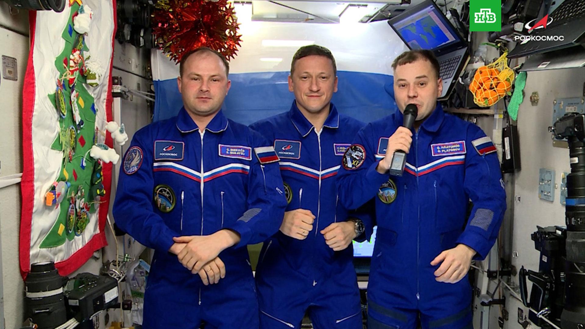 С борта Международной космической станции самые искренние пожелания к Новому году и Рождеству передали Сергей Кудь-Сверчков, Сергей Микаев и Олег Платонов.