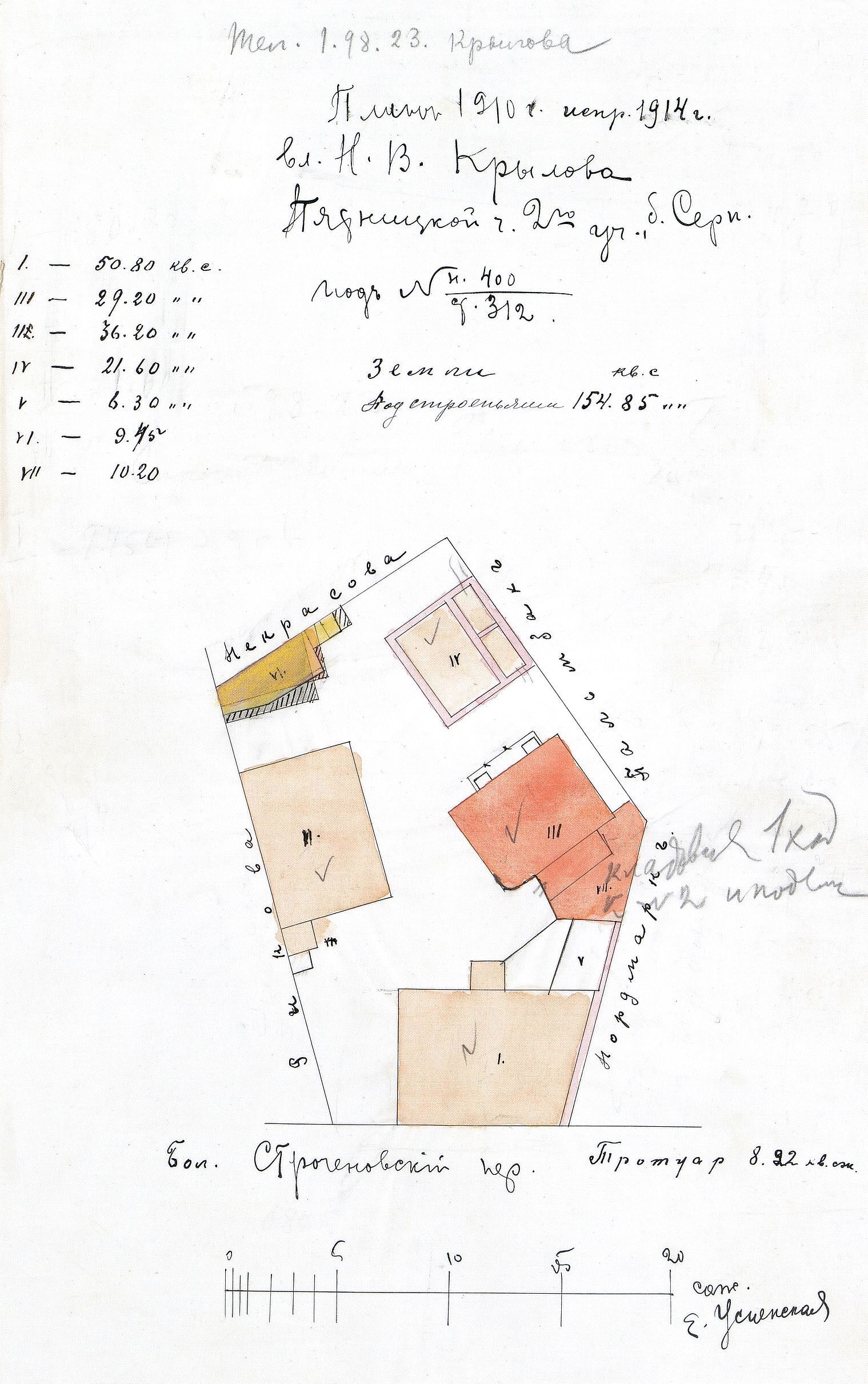 Сергей Есенин, уроженец рязанского села Константиново, летом 1912 года приехал в Москву к отцу. Он жил в Большом Строченовском переулке на втором этаже деревянного дома и работал на соседней улице Щипок приказчиком в мясной лавке. В контору к ее хозяину Николаю Крылову устроили будущего поэта, чтобы в дальнейшем он смог поступить в Московский учительский институт. В электронном издании представлен план и описание домовладения купца, где в разных квартирах жил Сергей Есенин в 1912–1913 годах.