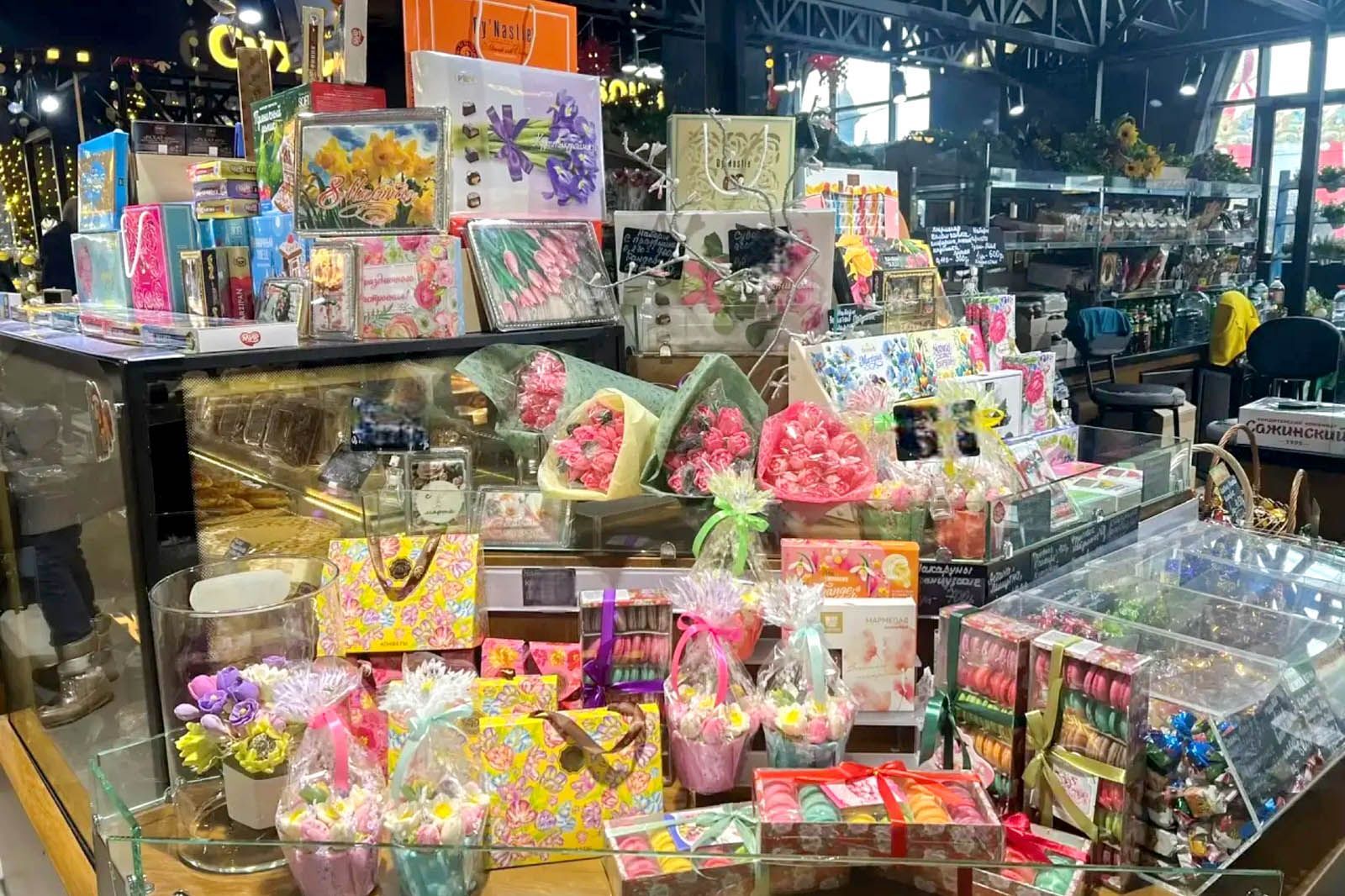 Готовые подарочные наборы можно найти на нескольких ярмарках в разных районах города. Например, на площадке в Троицке на Кварцевой улице предлагают корзины с тремя видами ароматного чая и темным шоколадом. На ярмарке на Профсоюзной улице участница наполнила подарочными наборами целую витрину. Тюльпаны из нежного молочного шоколада, натуральный мармелад, наборы макарун и конфет с разными начинками, а еще сухофрукты в шоколаде — все это уже оформлено в яркую подарочную упаковку. Тут же, на прилавке фермеров из Самарской области, которые привозят на продажу сыр из молока уникальной для России породы овец, к празднику подготовлен набор сыров.