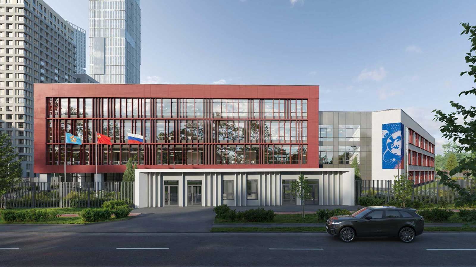 Здание образовательного комплекса будет разноуровневым, с большими окнами в зоне многофункционального пространства. Его яркими деталями станут два мурала на космическую тематику, которые украсят фасад. Облицовку выполнят в белом, оранжевом и сером тонах с использованием фасадной штукатурки, керамических плиток и стальных ламелей. Все помещения и территорию приспособят для маломобильных граждан.