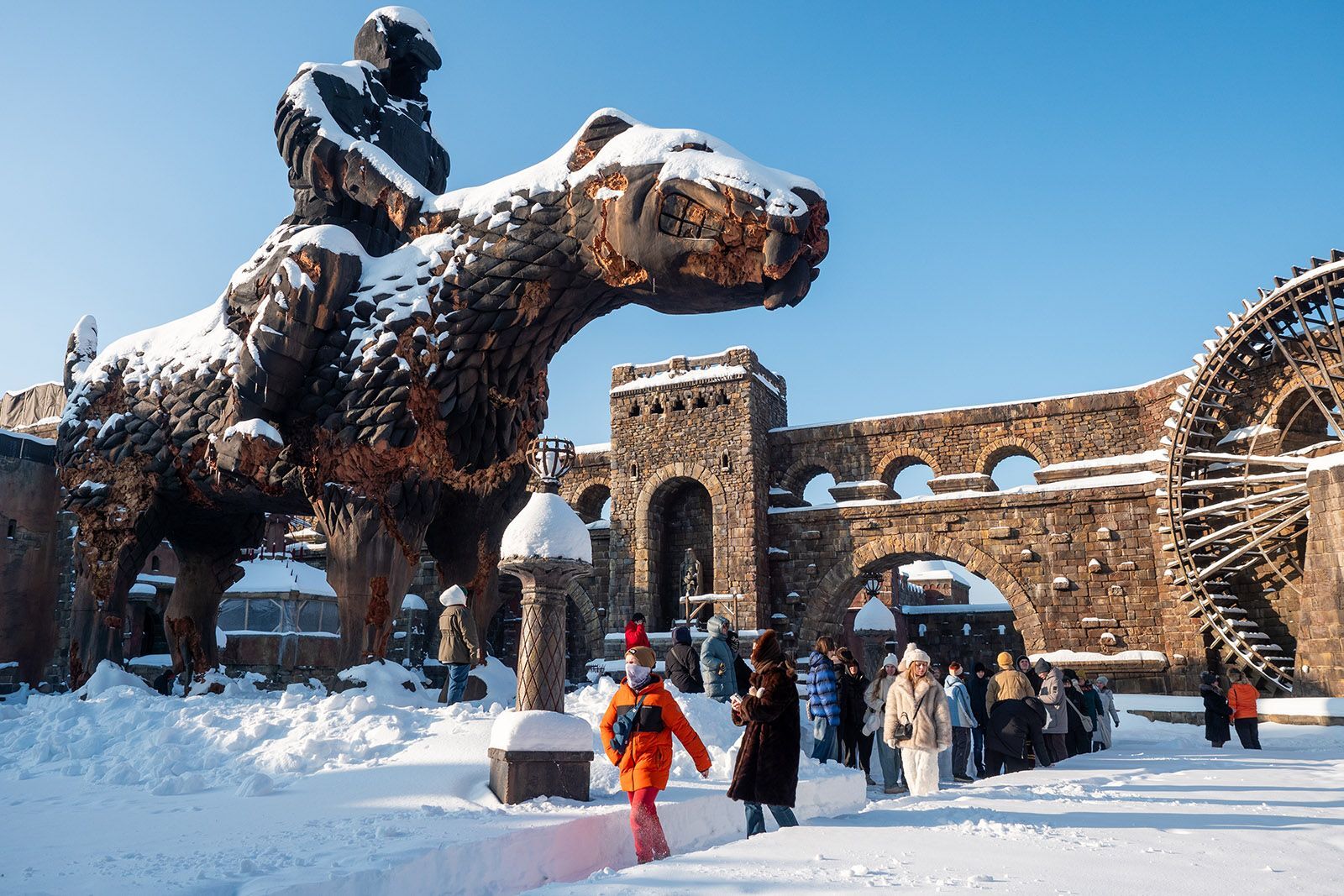 «Мне очень понравилась площадка „Города Ближнего Востока и Средней Азии“ с узкими улочками, терракотовыми домами, тканевыми навесами. А еще удивительно эти декорации смотрятся зимой, как в каком-то постапокалиптическом мире», — поделилась Елизавета Кузнецова, студентка первого курса киноколледжа № 40 «Московская международная киношкола».