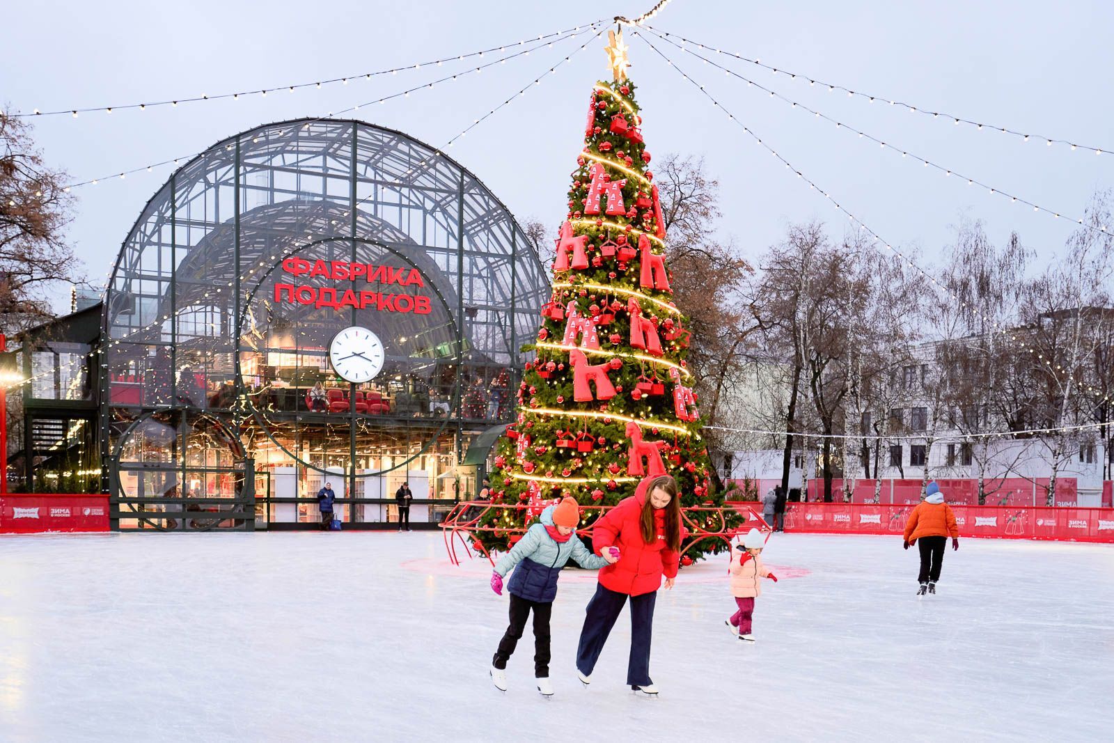 Флагманом проекта стал павильон «Фабрика подарков» на Болотной площади. Он стилизован под настоящее праздничное производство: внутри работает волшебный конвейер, на котором представлена продукция московских брендов — от зимней одежды и аксессуаров до косметики и украшений. Еще здесь можно упаковать подарок, отправить письмо Деду Морозу, а также посетить бесплатные мастер-классы по созданию венков, аромасвечей, росписи пряников и игрушек. Рядом с павильоном работает каток площадью более 2,5 тысячи квадратных метров, где предлагают бесплатно покататься, в том числе под руководством опытных тренеров проекта «Мой спортивный район». Зарегистрироваться на сеанс можно в сервисе «Мосбилет», а на спортивные тренировки — на сайте проекта moysportrayon.sport.mos.ru.