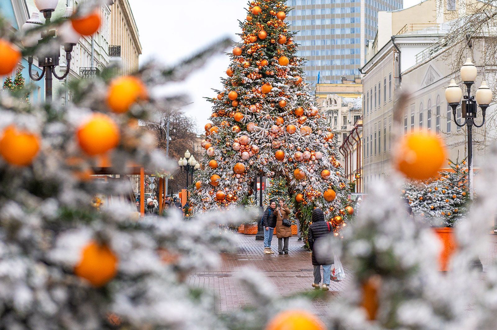 К Новому году улицы Москвы, витрины магазинов и фасады зданий украсили сияющими гирляндами и другими декорациями. На площадях появился город елочных игрушек и загорелись световые тоннели. Центр столицы утонул в зарослях пихт, сосен, елей и можжевельника. От торговых шале доносится аромат горячего сбитня, мандаринов и имбирных пряников. Многие кафе и рестораны придумали специальное праздничное меню.