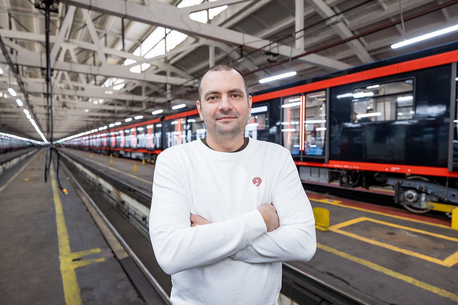 Отполированная «Москва-2024» с черной маской и красной окантовкой готовится к выезду из электродепо «Замоскворецкое». От обычных составов ее отличает цвет и надпись «Это беспилотный поезд» на борту. Перед тем как выпустить новейшее изобретение на линию, машинист и специалисты Центра исследования и разработки беспилотного транспорта Московского метрополитена завершают контрольный осмотр, проверяют работу дверей и всех систем. Наконец подается сигнал, открываются ворота — и поезд движется по рельсам.