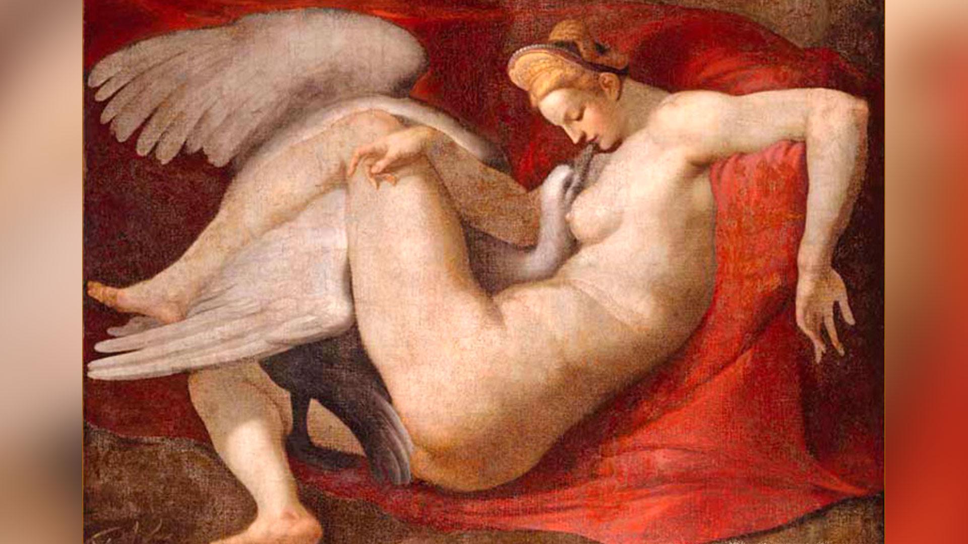 В Итальянском кабинете представили самое масштабное живописное повторение исчезнувшего полотна Микеланджело Буонаротти. Сюжет картины основан на легенде о любовном союзе Леды, супруги спартанского царя, и громовержца Юпитера в образе лебедя.